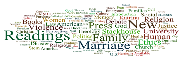 Law, Religion, and Ethics Religion. Gender, and Family Religion and the Economy Religion and Bioethics Violence, Justice, and Peace (a.k.a. “The Katrina Sequence”)